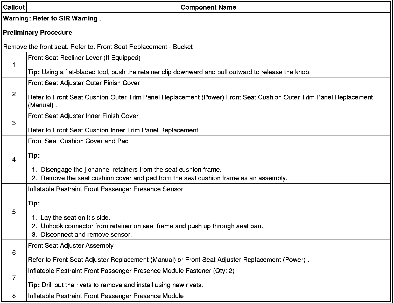 Inflatable Restraint Passenger Presence System Replacement - Front (without HP2)