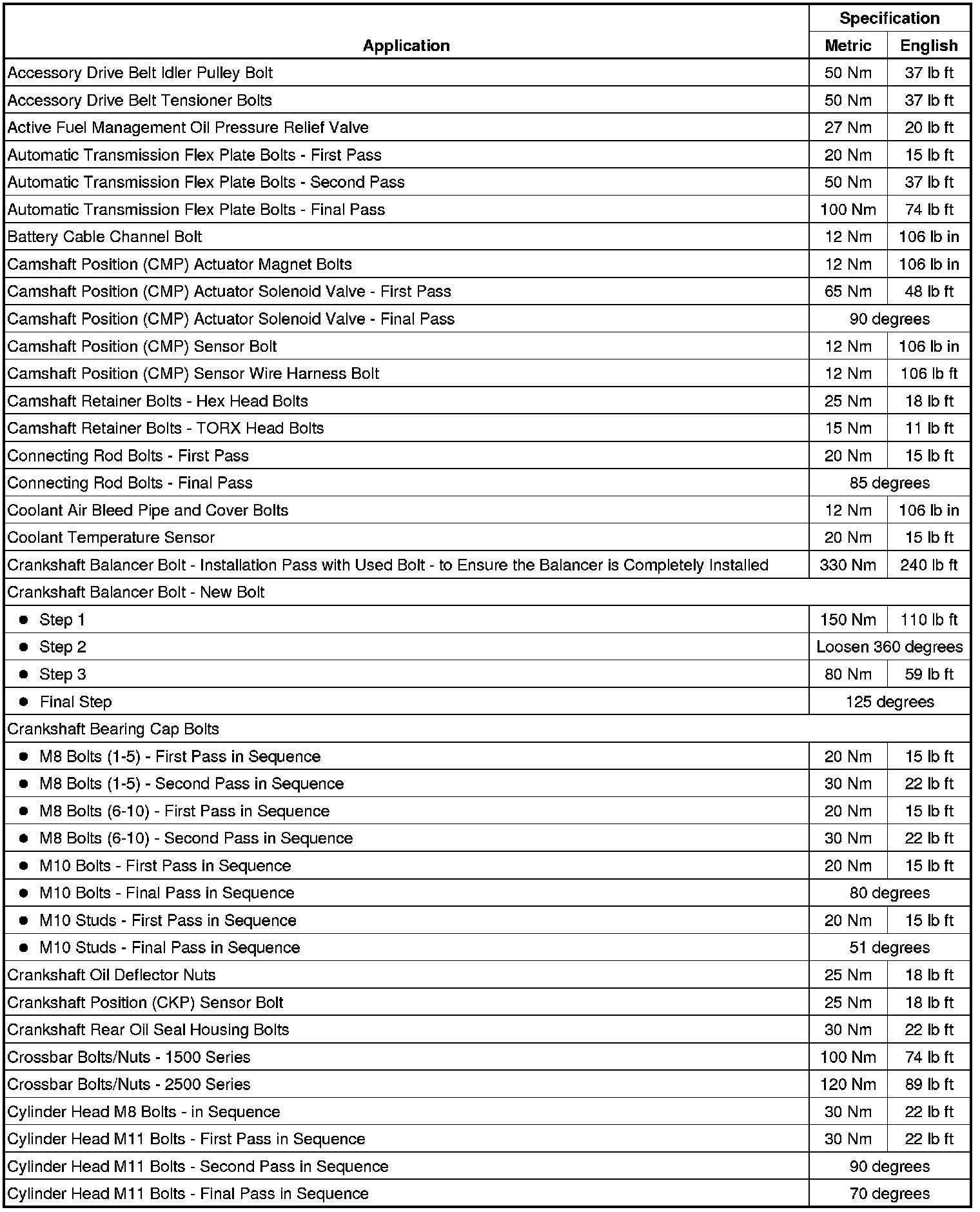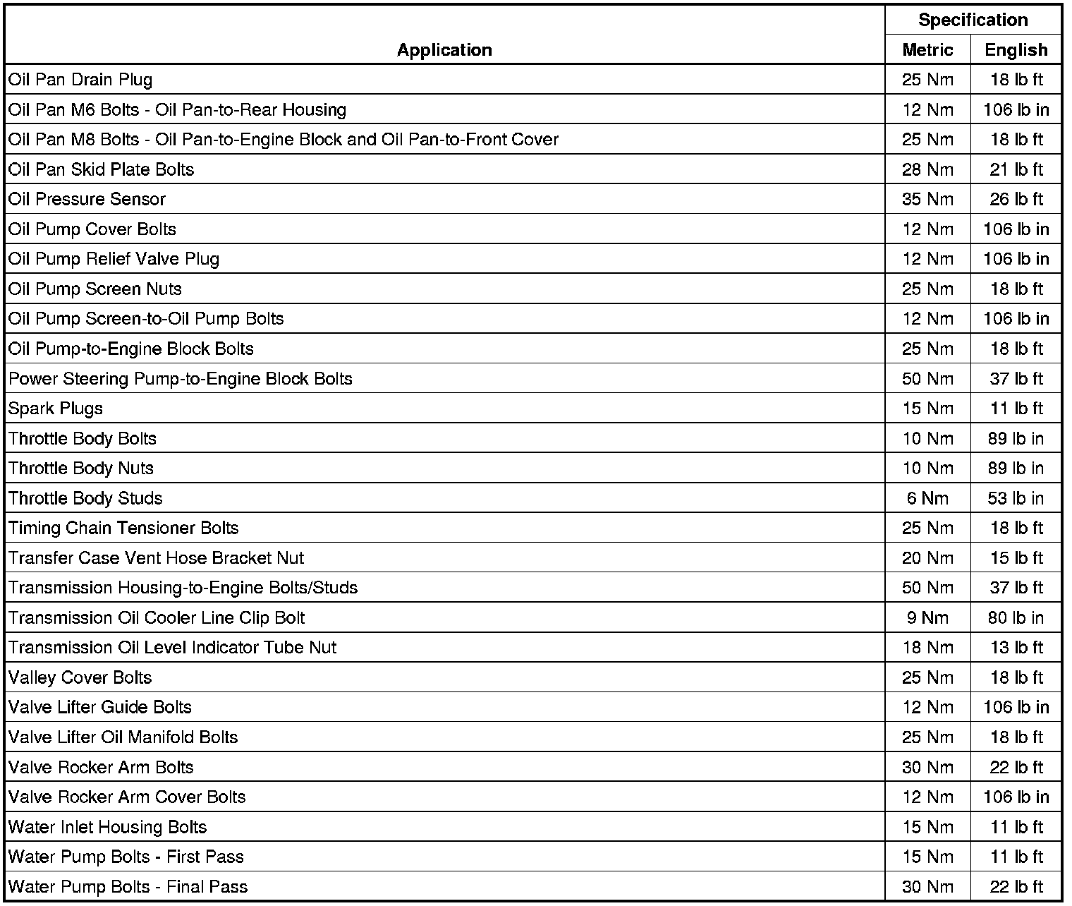 Fastener Tightening Specifications