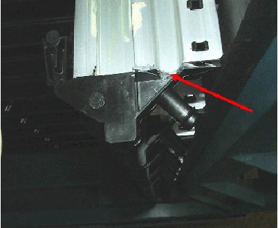 Inspect that the rear drain tubes have adequate downslope. If not, a foam block can be used to push the drain tube down to provide additional downward slope as shown above.