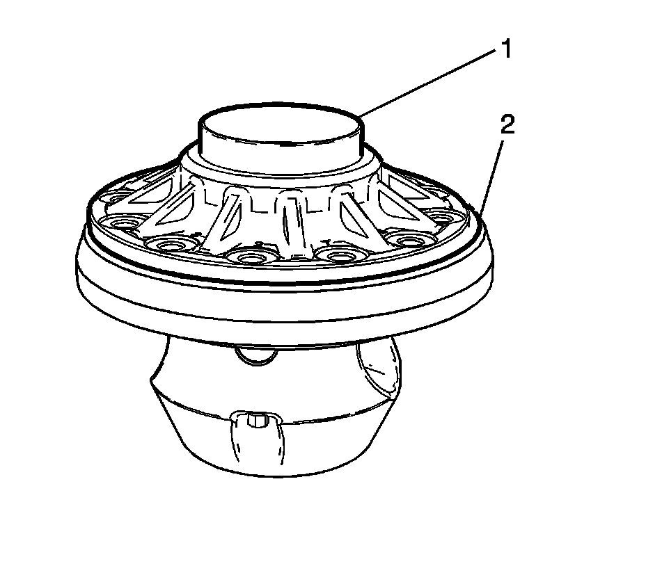 12. Position the differential adjuster bearing cup (1) so the it is even in the differential case (2).