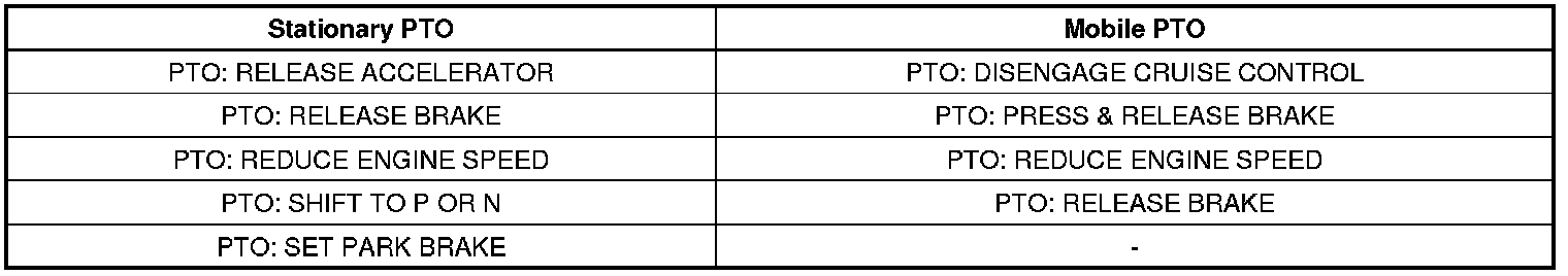 The mobile PTO mode will also disengage if the following conditions are detected by the vehicle modules: