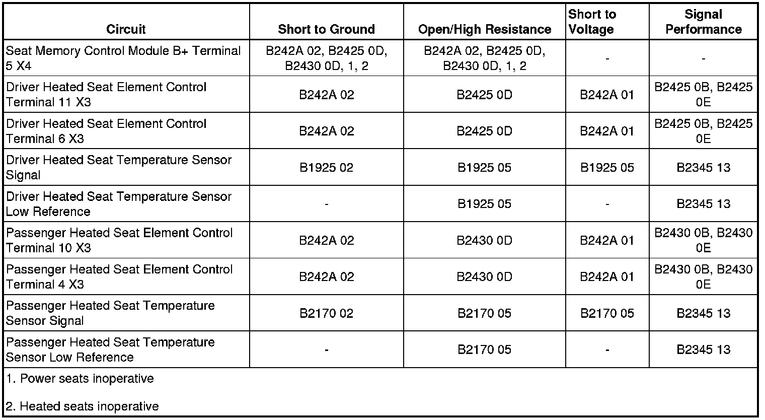 - Passenger Seat Cushion Heater Sensor Circuit Short to Ground