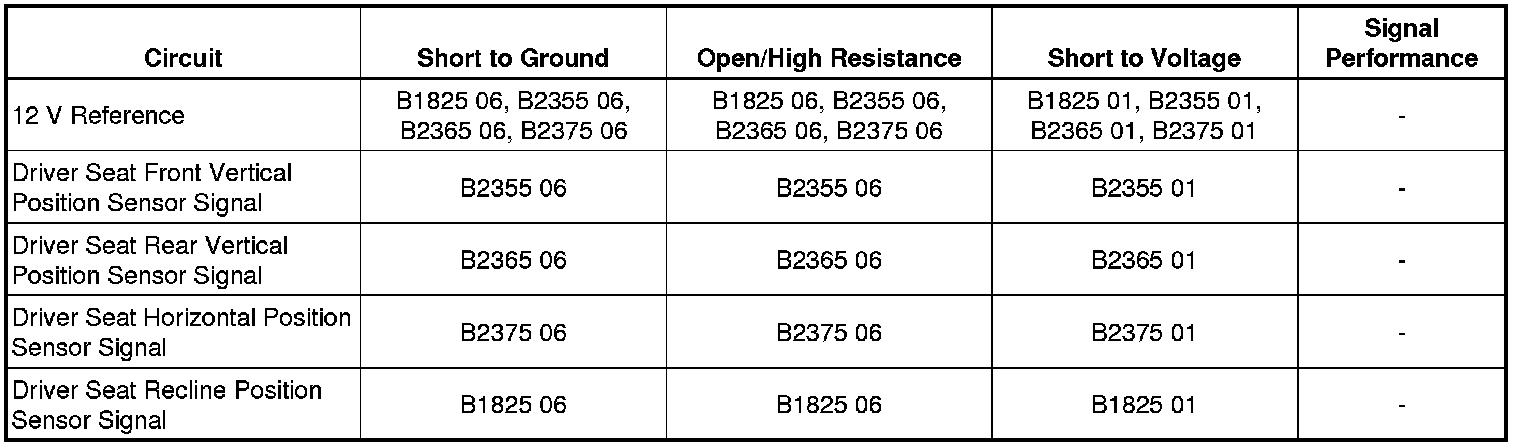 - Driver Seat Rear Vertical Position Sensor Circuit Short to Battery