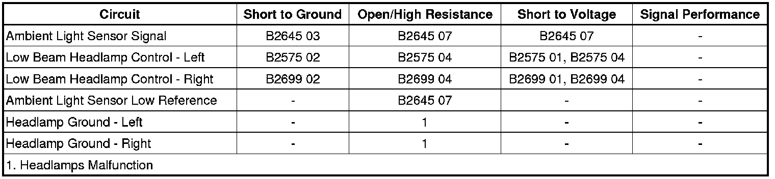 * The BCM detects a short to voltage or an open/high resistance in the ambient light sensor signal circuit.
