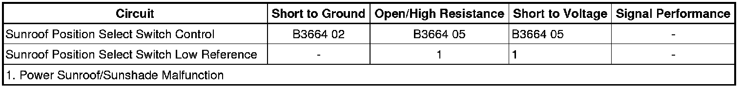 - Sunroof Position Select Switch High Signal Circuit Short to Ground