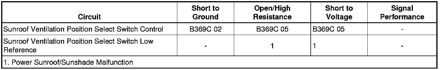 - Sunroof Ventilation Position Select Switch Circuit Short to Ground