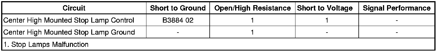 - Center High Mounted Brake Lamp Circuit Short to Ground