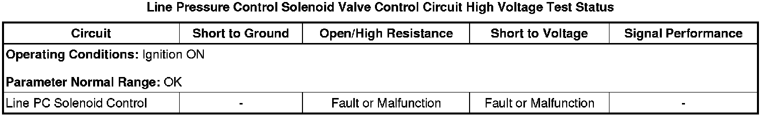 * Line Pressure Control Solenoid Valve Control Circuit High Voltage Test Status