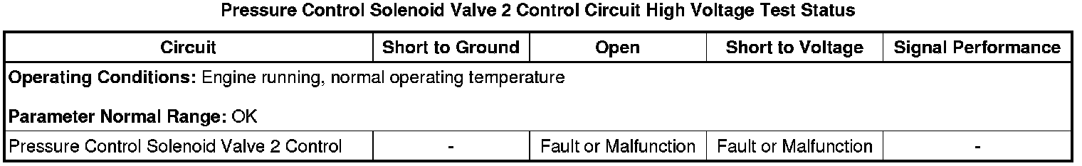 * Pressure Control Solenoid Valve 2 Control Circuit High Voltage Test Status