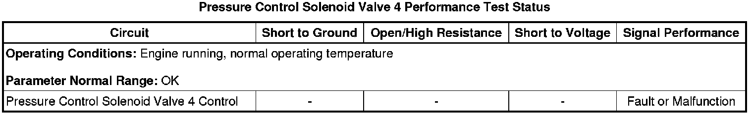 * Pressure Control Solenoid Valve 4 Performance Test Status