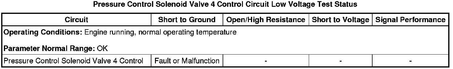 * Pressure Control Solenoid Valve 4 Control Circuit Low Voltage Test Status