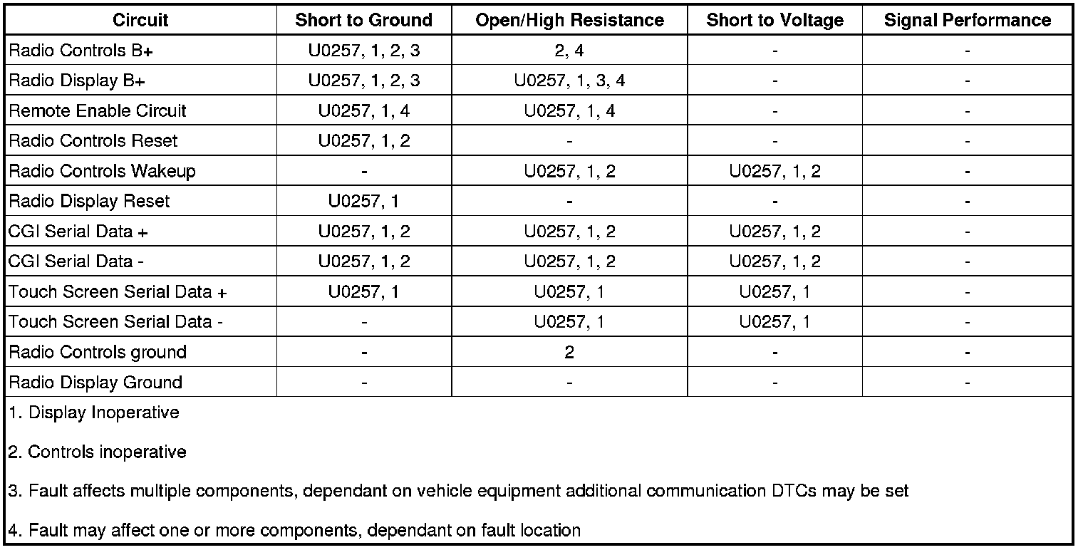 The radio/HVAC controls are supplied battery voltage and ground. The radio controls the power state of the controls via a wake up circuit. Communications between the radio controls and the radio are through the CGI serial data circuits.