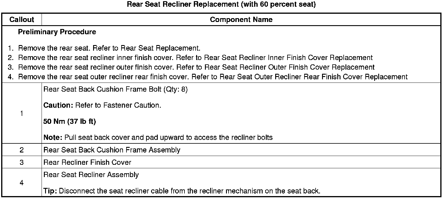 Rear Seat Recliner Replacement (with 60 percent seat)
