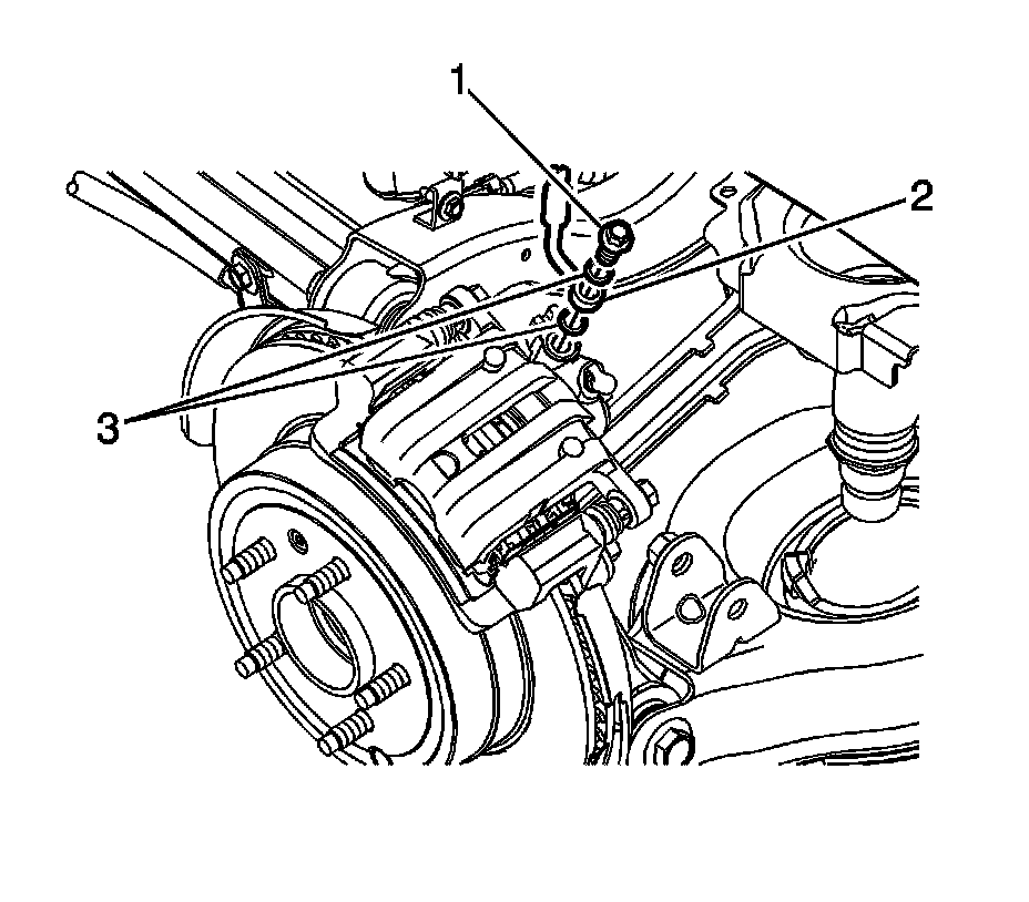 5. Remove and discard the brake hose fitting gaskets (3).