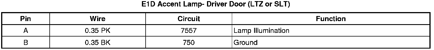 E1D Accent Lamp- Driver Door (LTZ or SLT)