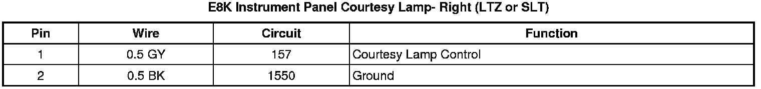 E8K Instrument Panel Courtesy Lamp- Right (LTZ or SLT)
