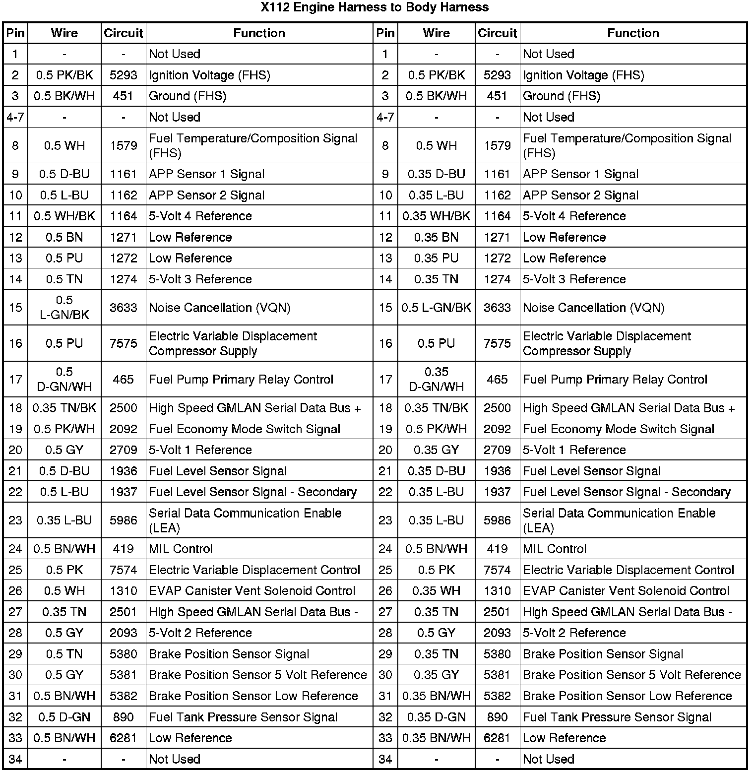 X112 Engine Harness to Body Harness