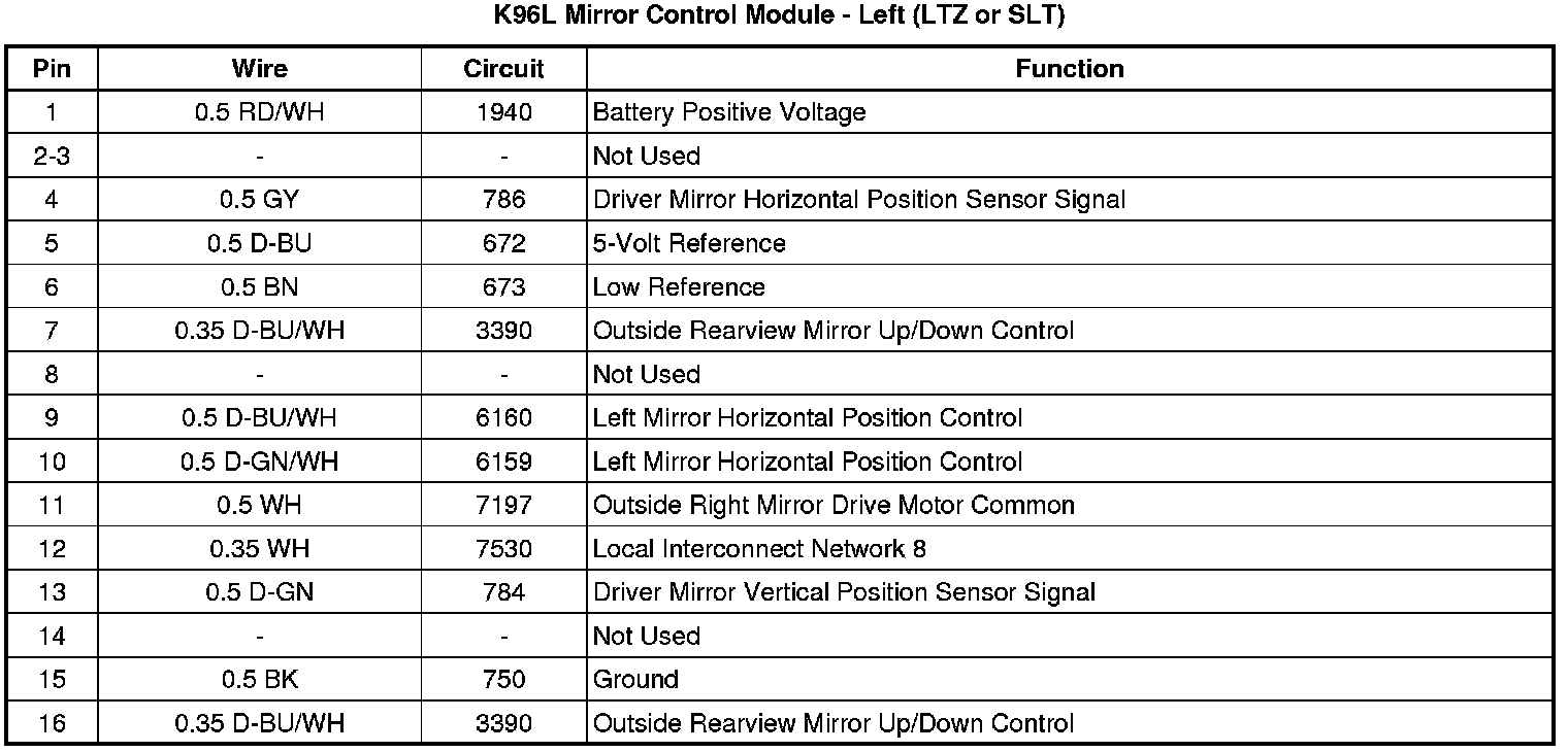 K96L Mirror Control Module - Left (LTZ or SLT)