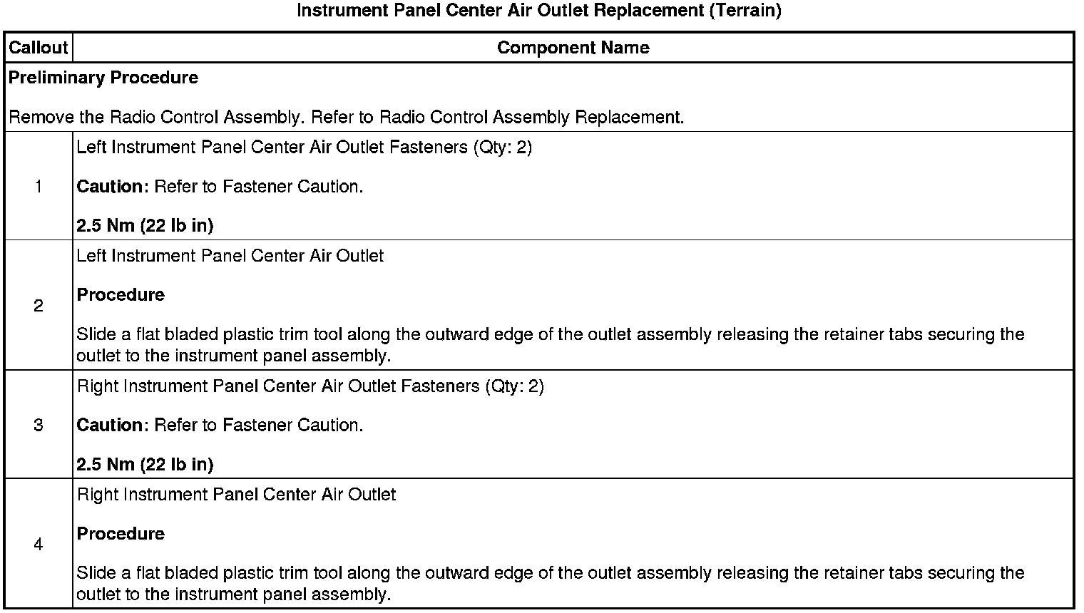 Instrument Panel Center Air Outlet Replacement (Terrain)