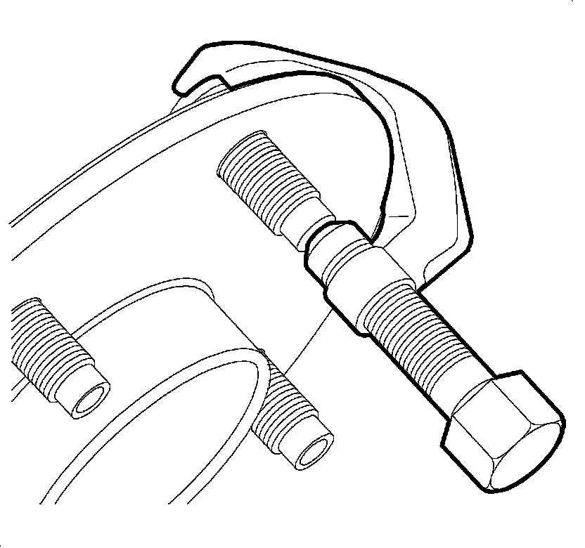 4. Gradually tighten the nut in order to draw the stud into the hub flange until the head of the wheel stud is fully seated against the hub flange.