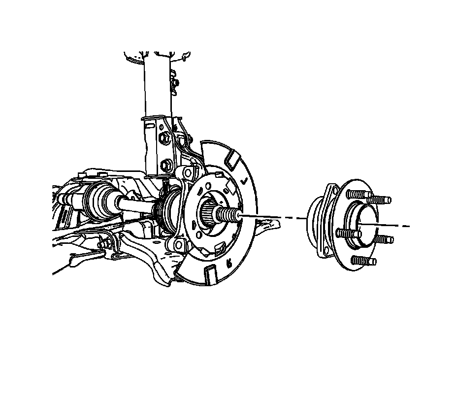 6. Install the wheel bearing/hub assembly to the steering knuckle. Refer to Front Wheel Bearing and Hub Replacement Front Suspension.