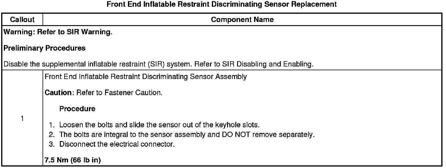 Front End Inflatable Restraint Discriminating Sensor Replacement