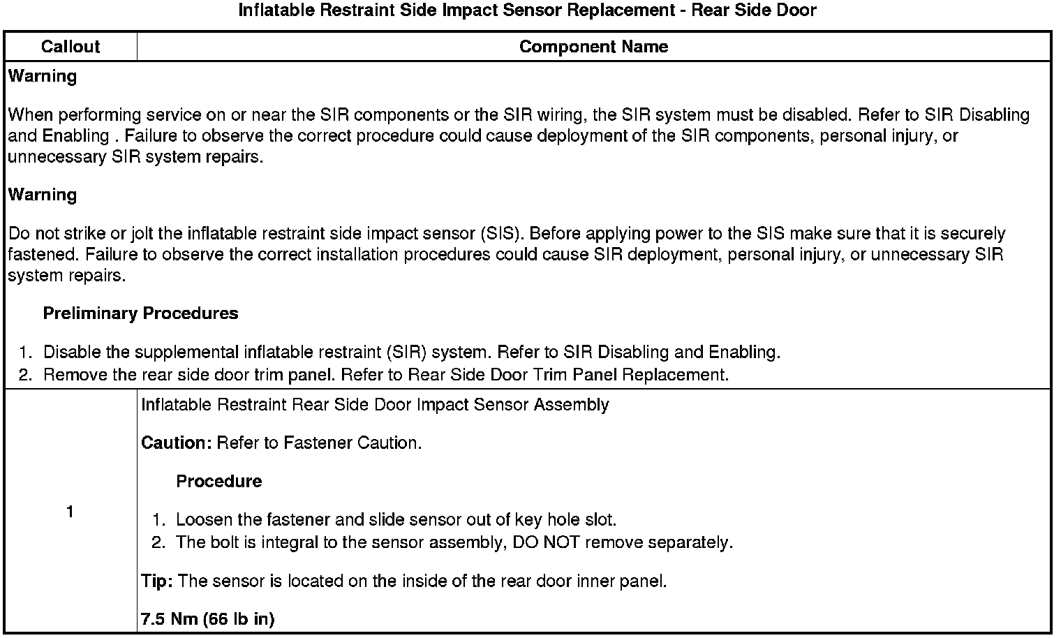Inflatable Restraint Side Impact Sensor Replacement - Rear Side Door