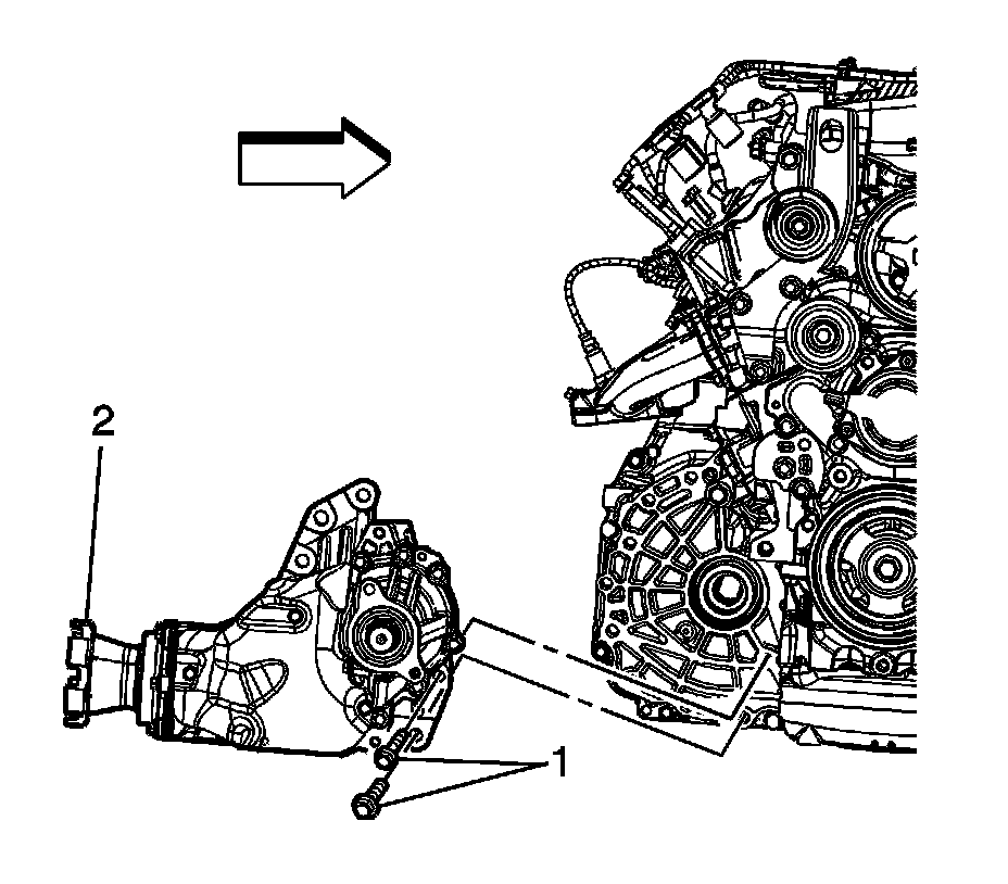 11. Remove the bolts (1) securing the transfer case to the transaxle.