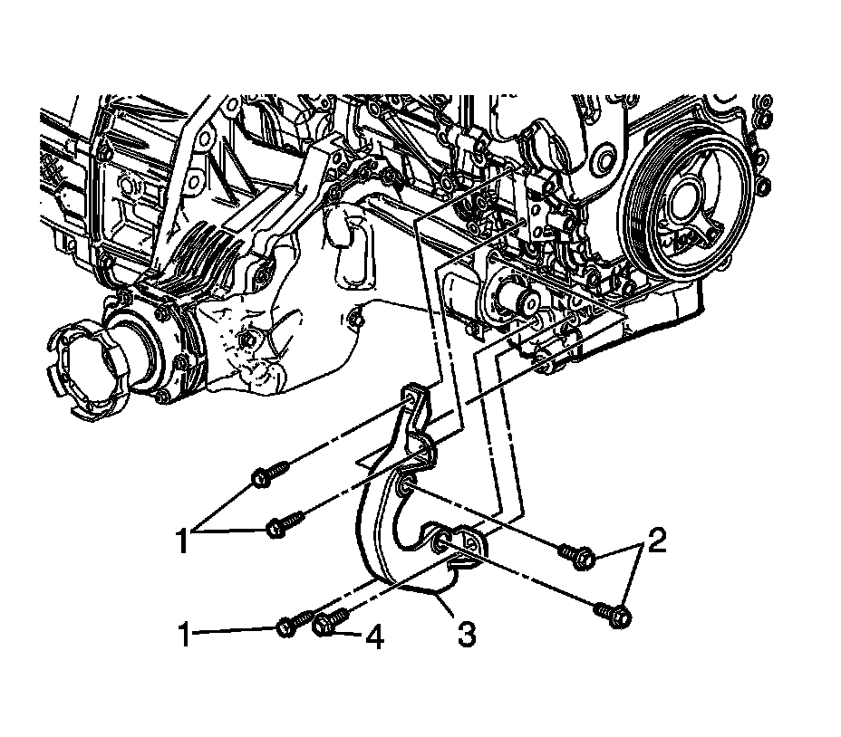 7. Remove the transfer case brace (3). Refer to Transfer Case Brace Replacement (LFW Engine) .
