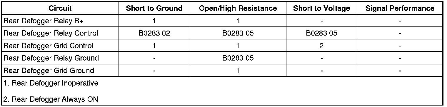 • If less than 2 ohms, test or replace the E18 Rear Defogger Grid.