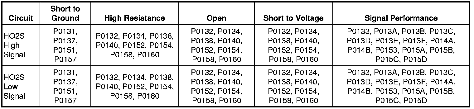 DTC P0133, P013A-P013F, P014A, P014B, P0153, P015A, P015B, P015C, P015D, P2270, P2271, P2272, or P2273