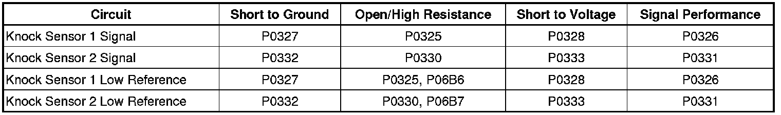• If DTC P0325, P0327, P0328, P0330, P0332, or P0333 is set with P06B6 or P06B7 refer to DTC P0325, P0327, P0328, P0330, P0332, or P0333 P0325 for further diagnosis.