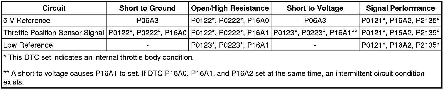 * DTCs P0122, P0123, P0222, P0223, P16A0, P16A1, P16A2, and P2135 are Type A DTCs.
