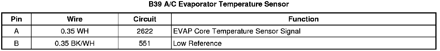 B39 A/C Evaporator Temperature Sensor
