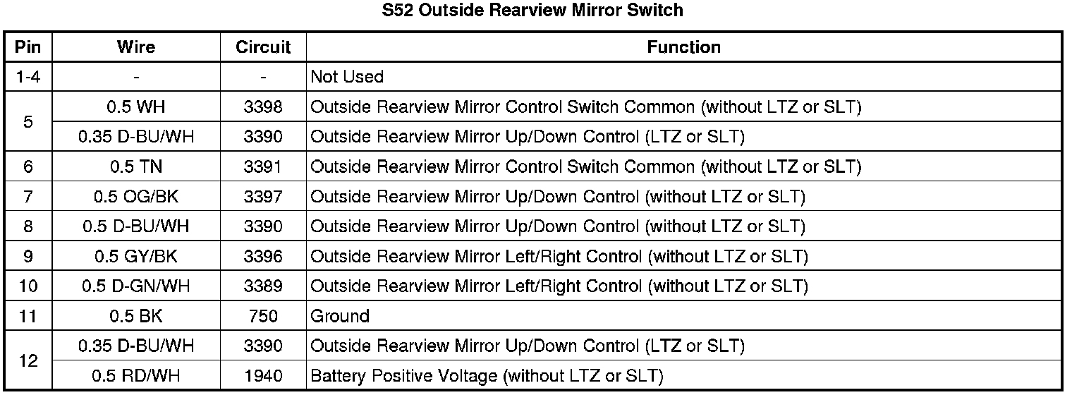 S52 Outside Rearview Mirror Switch