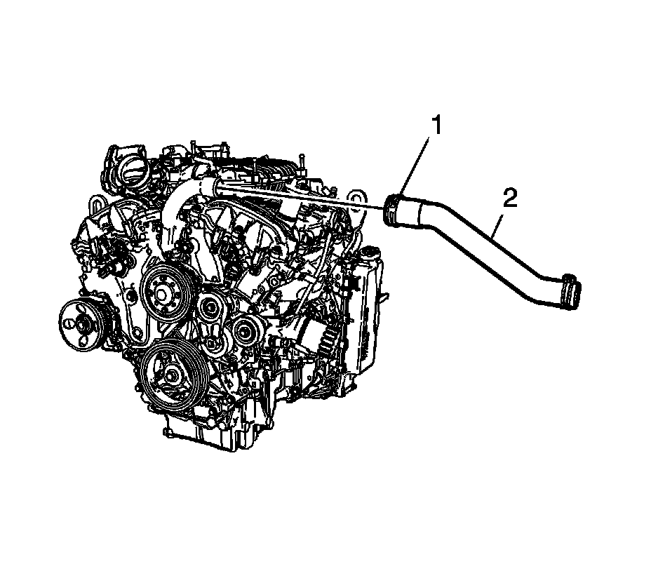 42. Connect the Coolant Recovery Reservoir Outlet Hose. Refer to Coolant Recovery Reservoir Outlet Hose Replacement (LF1 or LFW) Coolant Recovery Reservoir Outlet Hose ReplacementCoolant Recovery Reservoir Outlet Hose Replacement (LEA) Coolant Recovery Reservoir Outlet Hose Replacement.