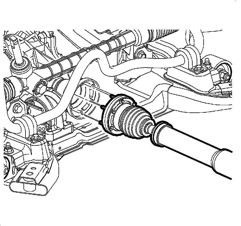 53. Disconnect the left and right axle shafts from the hubs. Refer to Front Wheel Drive Shaft Replacement Front Wheel Drive Shaft Replacement.