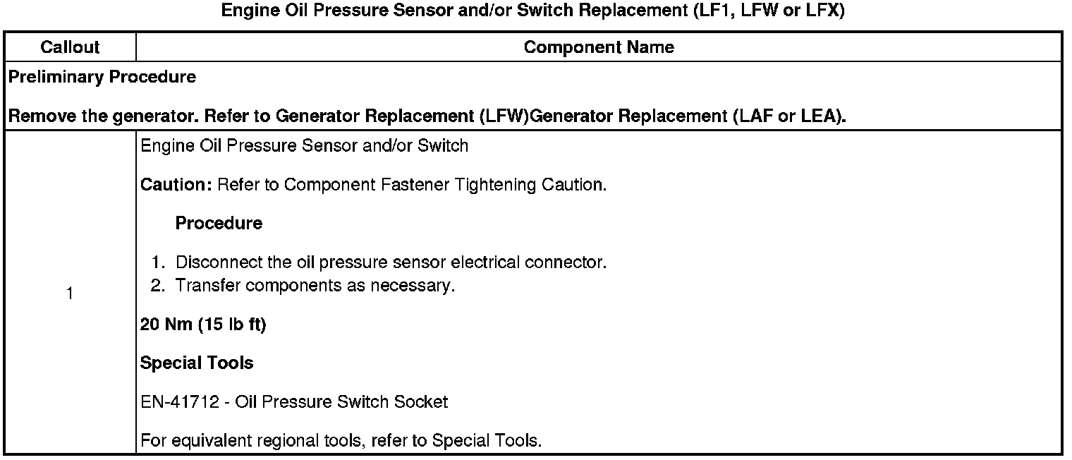 Engine Oil Pressure Sensor and/or Switch Replacement (LF1, LFW or LFX)