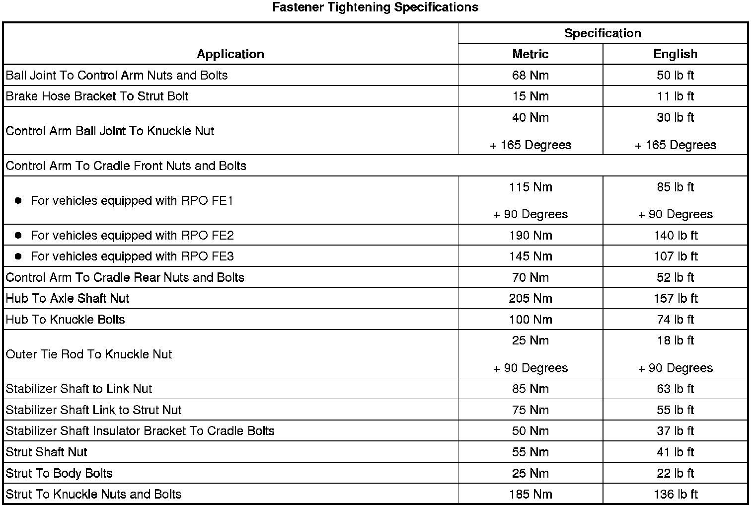 Fastener Tightening Specifications