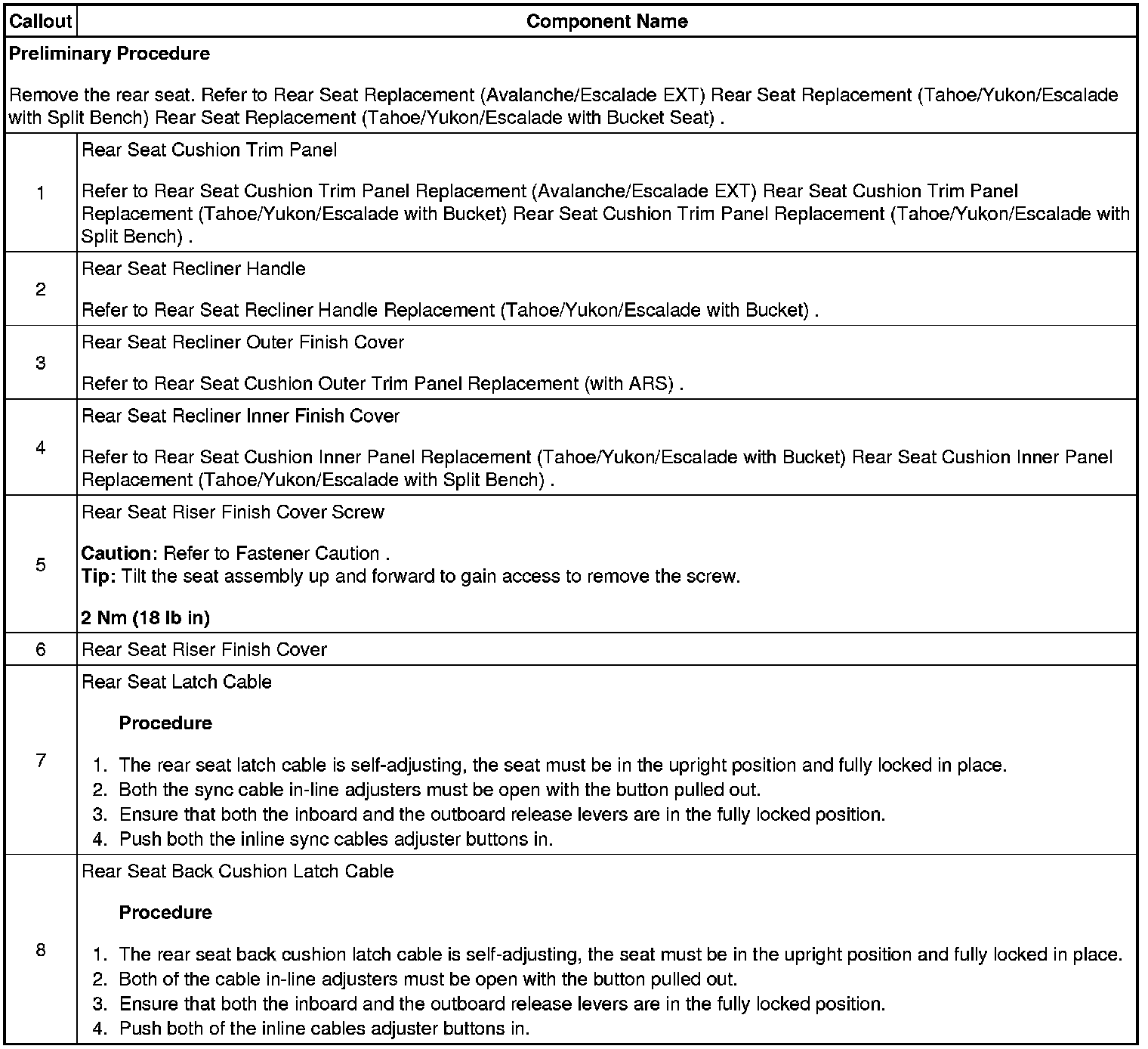 Cushion Latch Cable Replacement (Tahoe/Yukon/Escalade with Bucket)