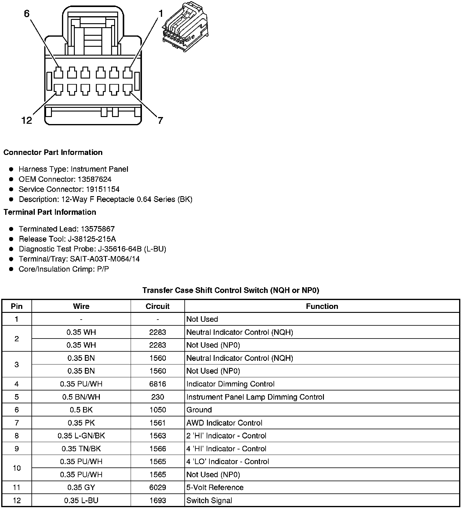 Transfer Case Shift Control Switch (NQH or NP0)