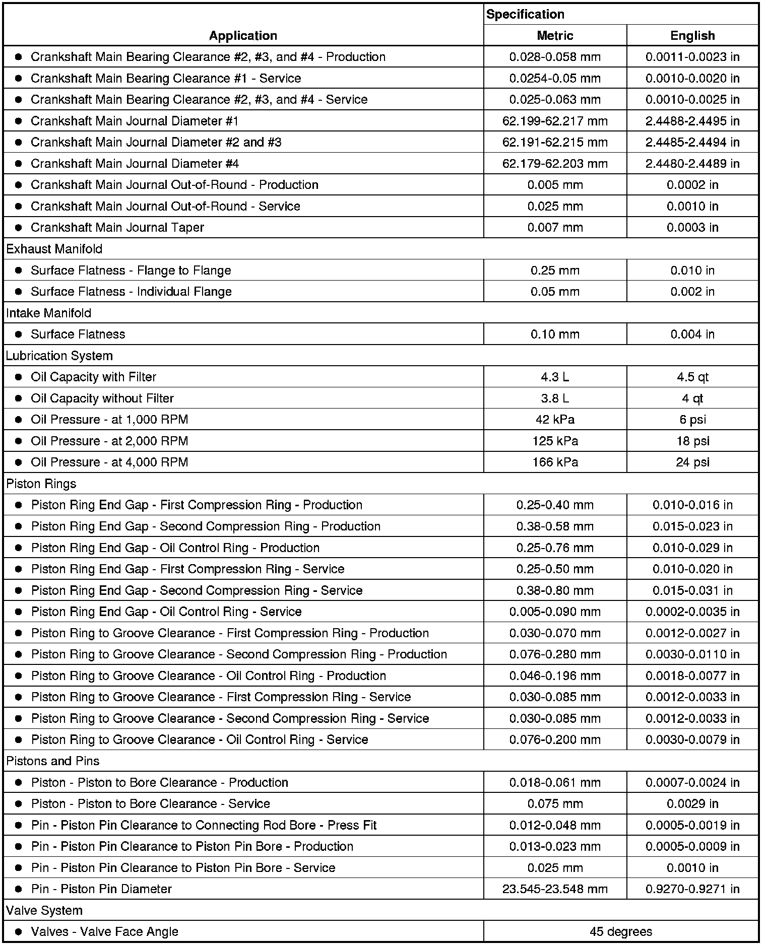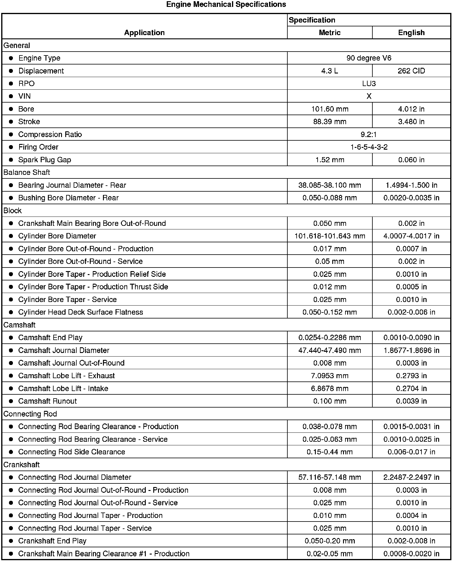 Engine Mechanical Specifications