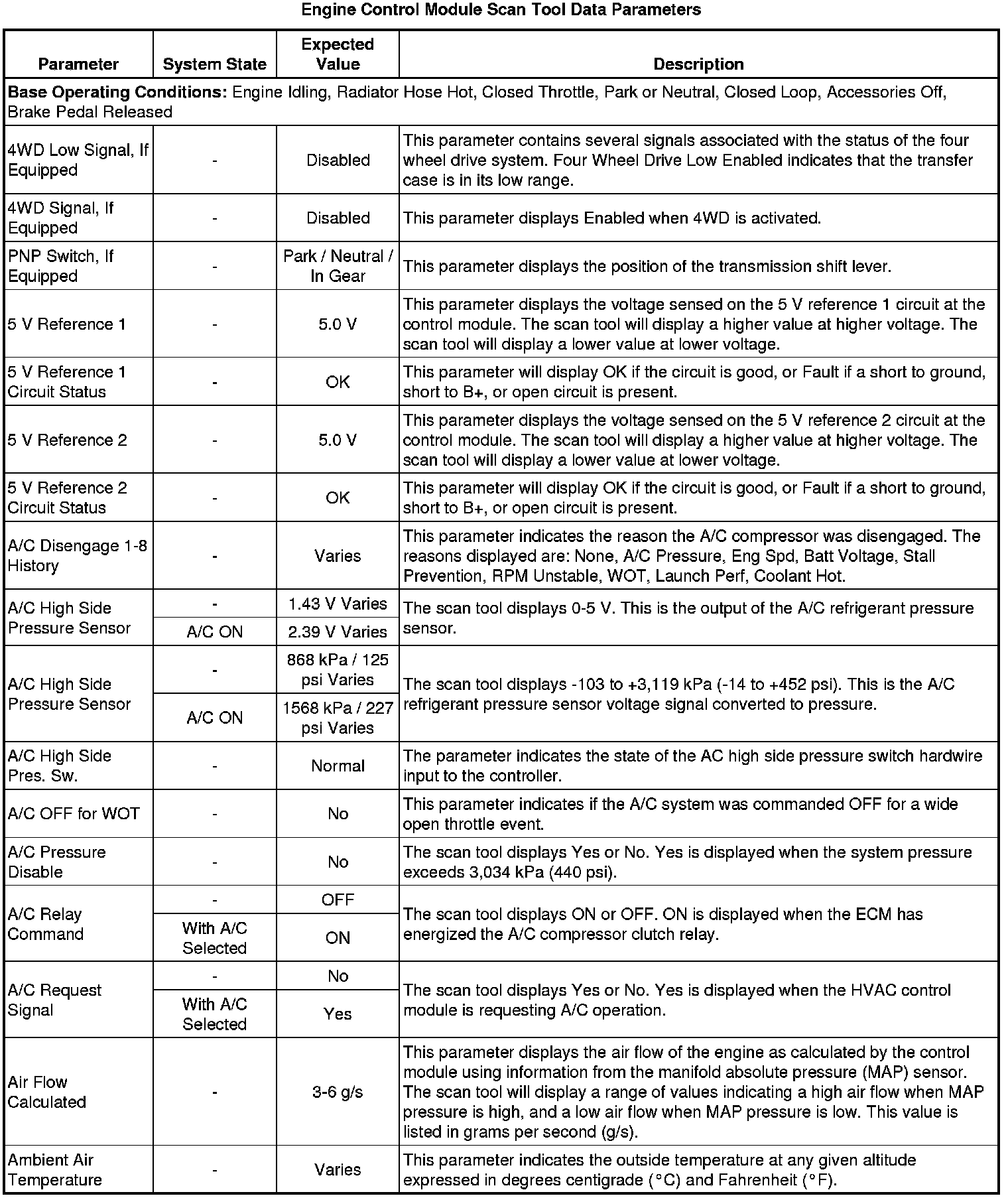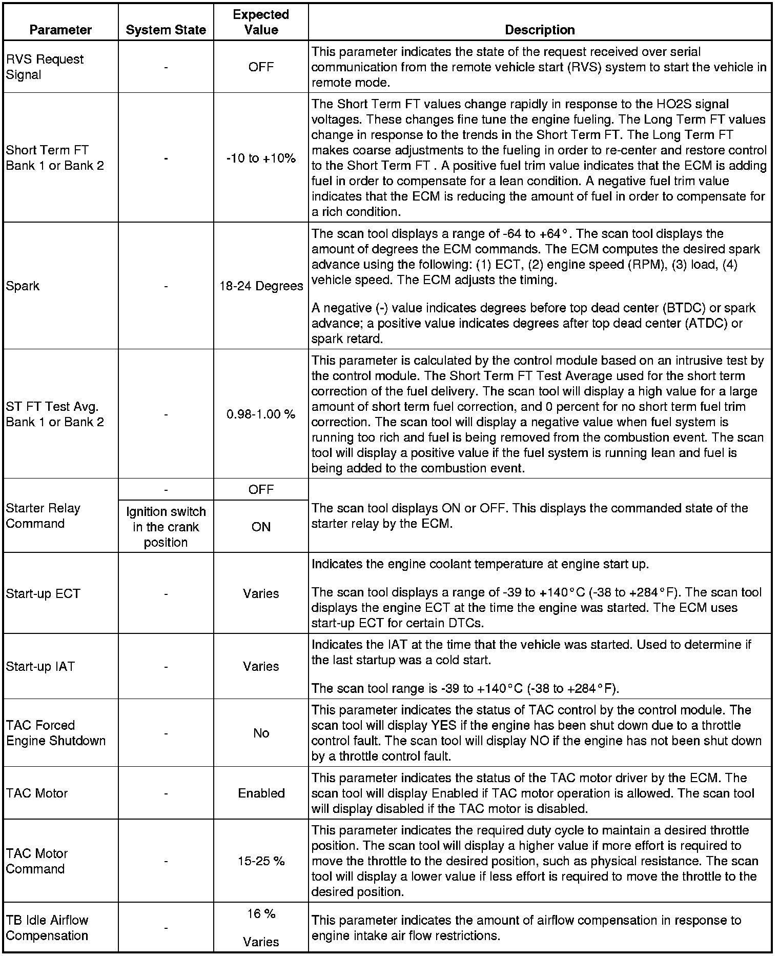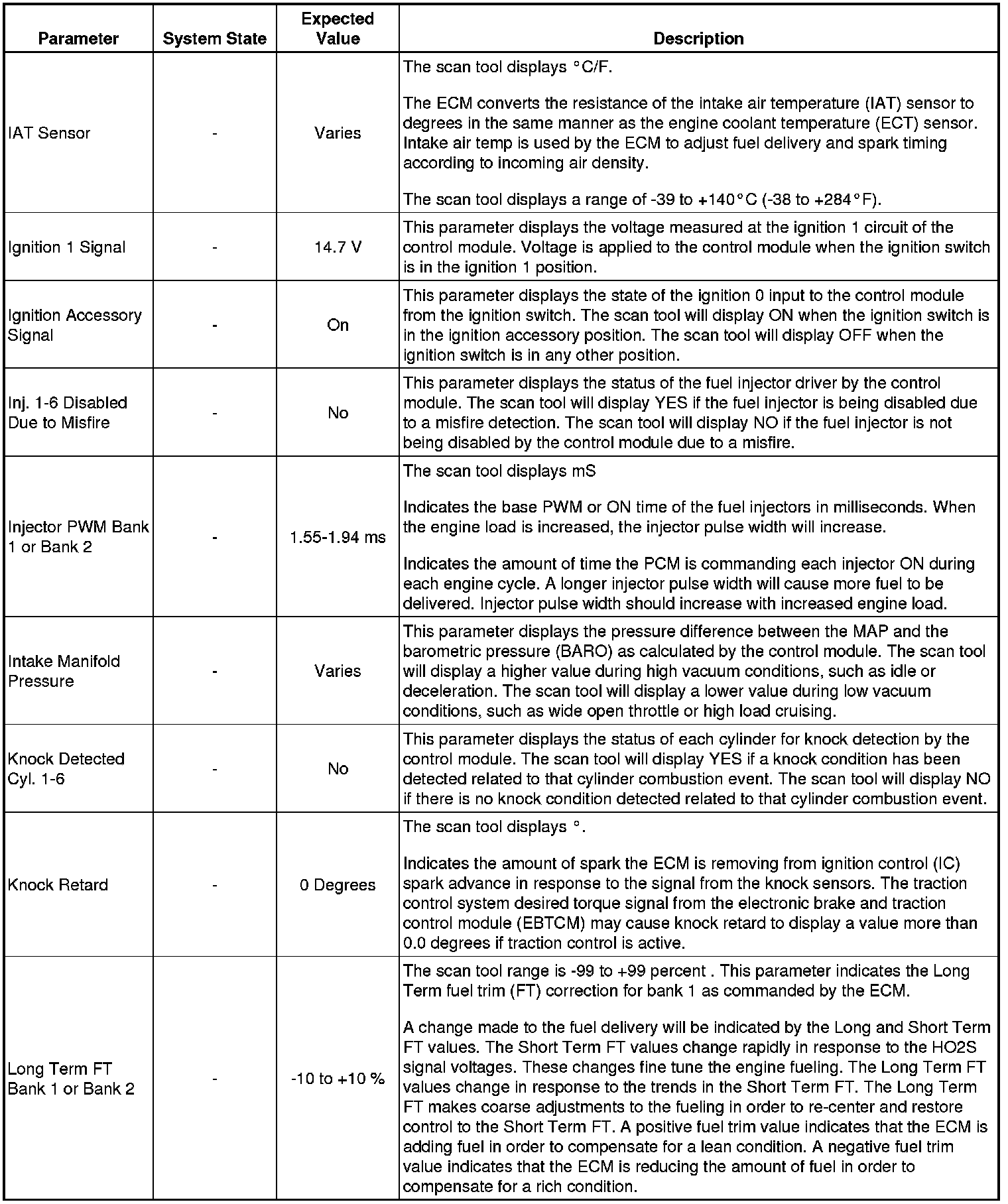 The Engine Scan Tool Data List represents values that would be seen on a normally running engine under the conditions listed below.