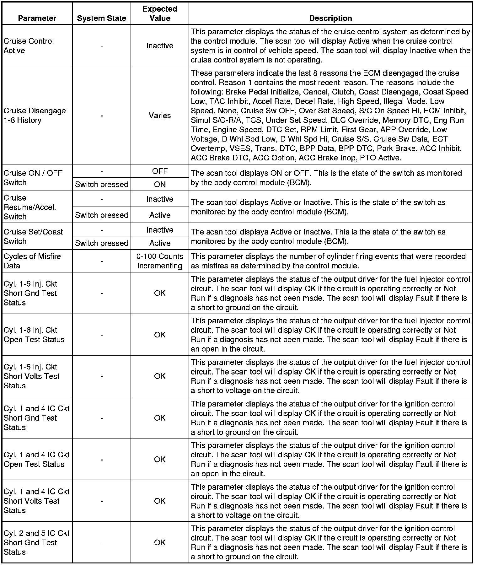 The Engine Control Module (ECM) Scan Tool Data List contains all ECM related parameters that are available on the scan tool. The list is arranged in alphabetical order. A given parameter may appear in any one of the data lists, and in some cases may appear more than once, or in more than one data list, in order to group certain related parameters together.