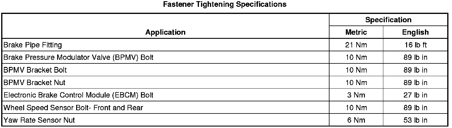 Fastener Tightening Specifications