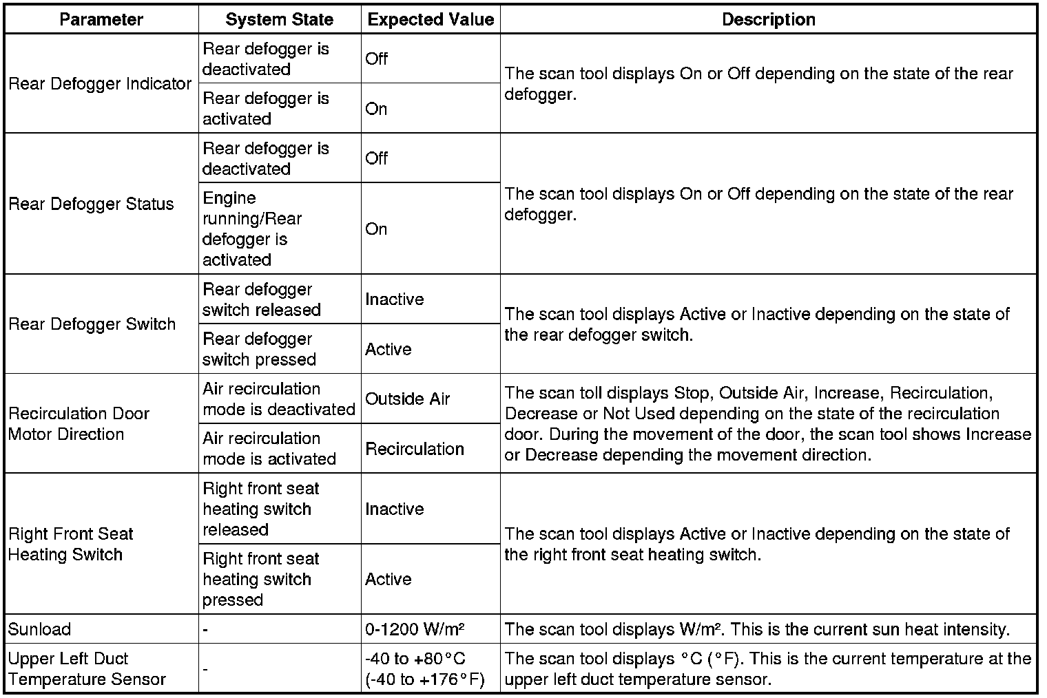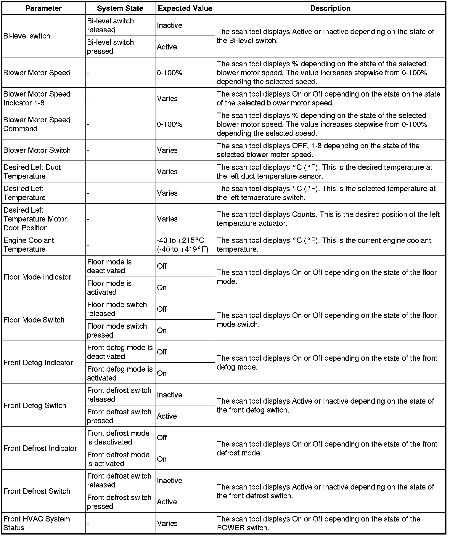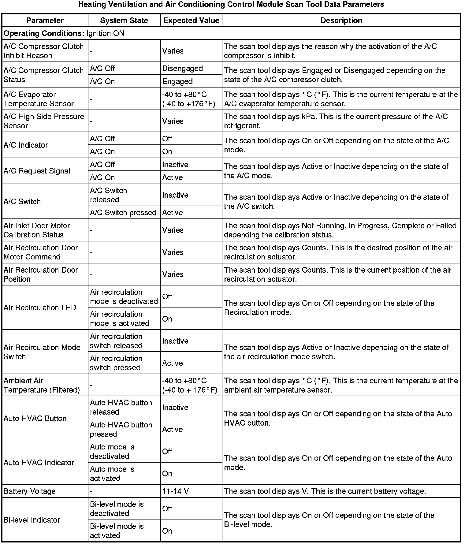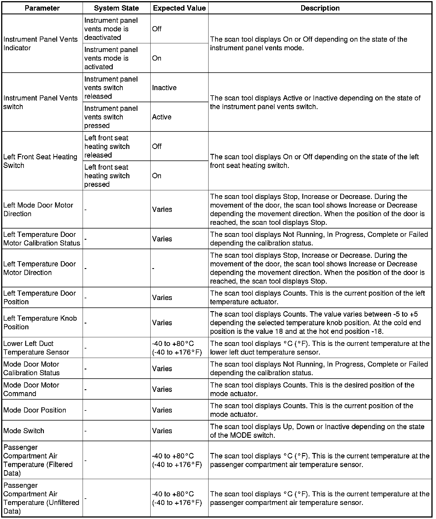 Heating, Ventilation and Air Conditioning Control Module Scan Tool Information