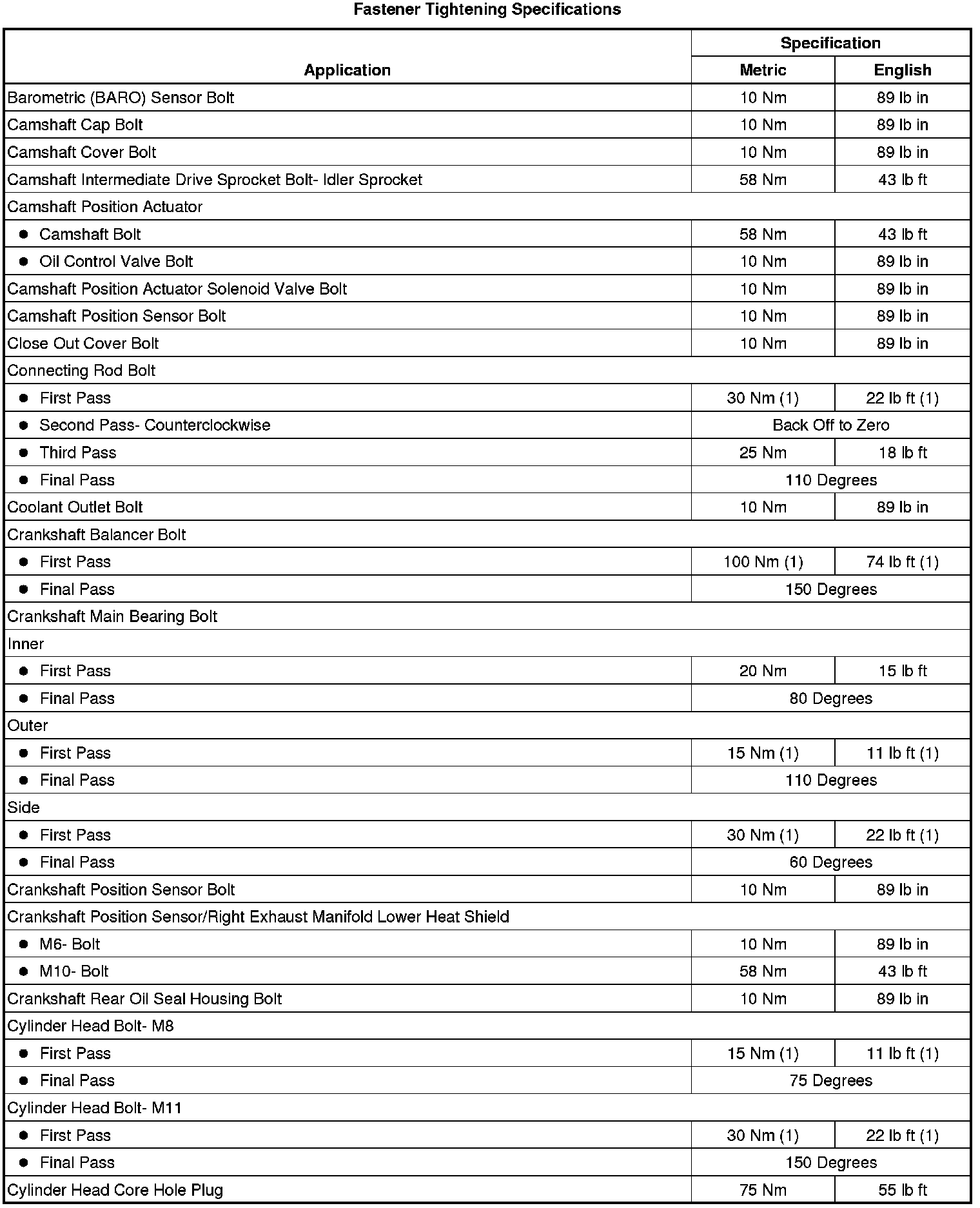 Fastener Tightening Specifications