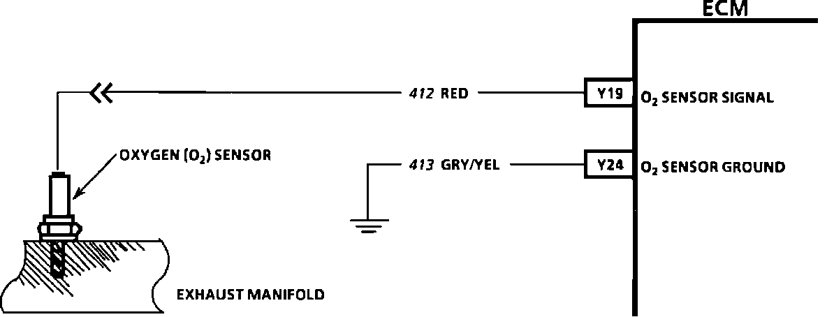 2. This test determines if the oxygen sensor is the problem, or if the ECM and wiring are at fault. In doing this test, use only a high impedance digital volt ohm meter. This test checks the continuity of circuit's 412 and 413. If circuit 413 is open, the ECM voltage on circuit 412 will measure over 0.5 volts (500 mV).