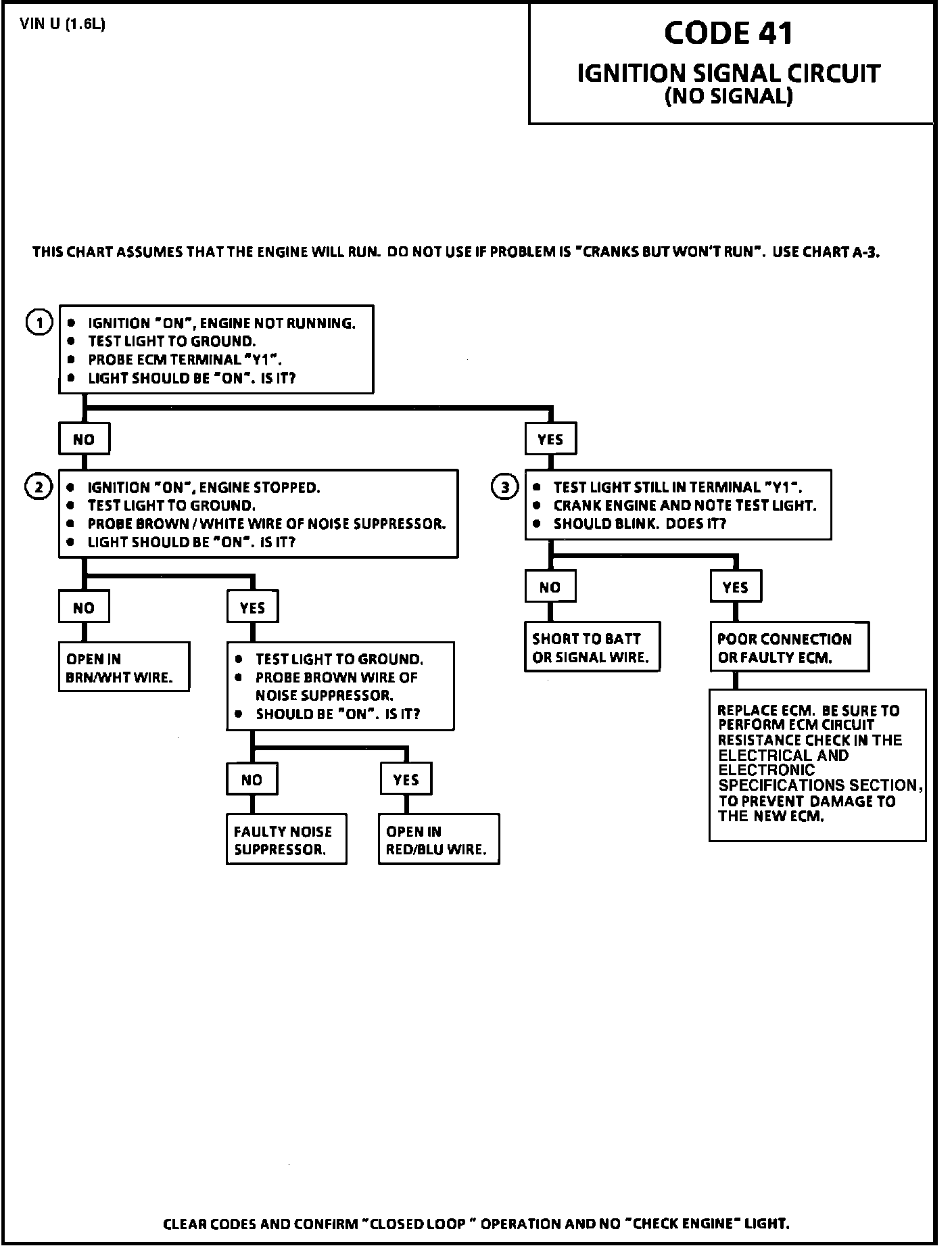 A poor or loose connection will set a Code 41. A visual inspection will verify all connections. This prevents setting a false trouble code to the ECM.