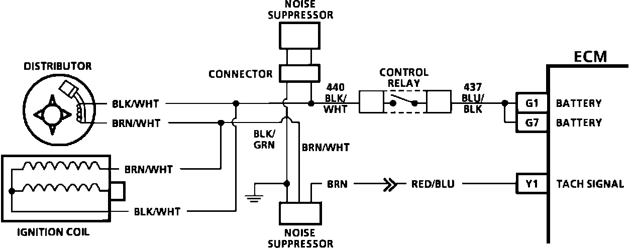 The tach signal, to the ECM (12 volts), will vary as the ignition coil is toggled to ground. The ECM uses this signal to send a pulse to the fuel injector. A Code 41 will set if there is no signal, or a constant voltage on the line.